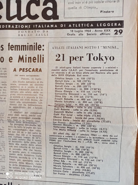 SULMONA - "Sono passati 62 anni quando sulla pista del Fuorigrotta di Napoli il sulmonese Luigi Carrozza, il 13 ottobre, vinceva il titolo di Campione Italiano assoluto dei 400 ostacoli. L’allora giovane atleta, in piena crescita agonistica, riusciva a centrare un prestigioso obiettivo in una giornata infernale caratterizzata da un pomeriggio piovoso e freddo. La vittoria di Carrozza sulla pista in terra rossa della città partenopea fu una grande sorpresa nel mondo dell’atletica italiana in quanto il giovane sulmonese, cresciuto nell’Atletica Sulmona, non era molto conosciuto nell’ambiente. Sulmona tutta in quel giorno si sentì orgogliosa di questo successo tant’è che l’intero evento fu trasmesso su Rai Uno e per l’occasione l’Amministrazione Comunale di allora installò uno schermo gigante in Piazza XX Settembre per consentire ai cittadini di seguire l’intero avvenimento.