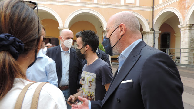 VIDEOSULMONA - Stefano Bonaccini in visita elettorale in Abruzzo oggi ha fatto tappa anche a Sulmona, a Palazzo San Francesco, dove ha incontrato il candidato sindaco Gianfranco Di Piero e i candidati della coalizione.Il Presidente della Regione Emilia-Romagna è stato in Abruzzo per una serie di appuntamenti elettorali e di presentazione del suo libro “Il Paese che vogliamo. Idee e proposte per l’Italia del futuro”."Il Pd con i suo candidati vuole concorrere innanzitutto con un portato di conoscenze e competenze, e il contributo di Bonaccini rientrerà pienamente in questa visione. Questa è stata anche un'importante occasione per fare buona campagna elettorale, parlando della concretezza delle problematiche e delle opportunità del nostro territorio. Un partito politico è anche e soprattutto questo: una comunità solidale di donne e uomini impegnati a livello internazionale, nazionale e locale, che si sostengono nel lavoro quotidiano, al servizio delle cittadine e dei cittadini".