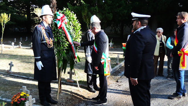 SULMONA - "Oggi 1° Novembre solenne processione dell’Arciconfraternita SS.Trinità, con inizio dalla chiesa della SS.Trinità con arrivo al Cimitero, dove il Vescovo monsignor Michele Fusco ha celebrato la Santa Messa. Il sindaco, all’ingresso del cimitero, ha deposto una corona in omaggio ai Caduti di tutte le guerre.Domani Mercoledi 2 Novembre alle 10.30 sarà celebrata una Santa Messa, in ricordo e suffragio dei Caduti di tutte le guerre, nel piazzale antistante il Cimitero (Parco delle Rimembranze). Venerdi 4 Novembre alle 10.30, in piazza Carlo Tresca, il sindaco deporrà una corona d’alloro al Monumento ai Caduti, in occasione della Giornata delle Forze Armate e della Festa dell’Unità Nazionale. Un momento particolare di commemorazione degli Italiani che hanno sacrificato la vita a difesa della patria e della libertà.