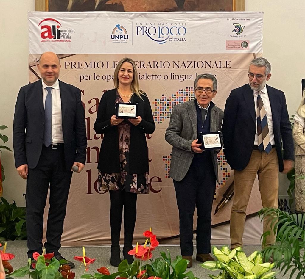 ROMA - "Daniela D'Alimonte ritira il premio in Campidoglio per il suo "Parole d'Abruzzo" di Ianieri Edizioni: l'autrice, letterata e dirigente scolastica pescarese infatti è tra i primi classificati al prestigioso Premio Nazionale dedicato al linguista Tullio De Mauro.Con orgoglio, dopo l'appuntamento romano di ieri, ammette: "è per me un onore vedere la mia opera 'Parole d’Abruzzo' dell'editore Ianieri per la collana diretta da Peppe Millanta 'Comete - Scie d’’Abruzzo', essere tra quelle premiate nel prestigioso intitolato al linguista Tullio de Mauro".Si tratta di un premio organizzato dall’Unpli, l’Unione Italiana delle Proloco nell’ambito dell’iniziativa, giunta ormai alla 11ª edizione consecutiva “Salva la tua lingua locale” per la giornata dei dialetti.