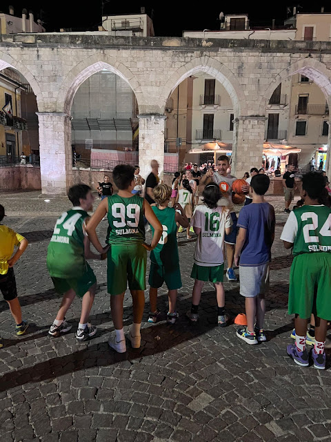 "La Notte Bianca di Sulmona è stata un trionfo di sport, divertimento e inclusione grazie allo spazio dedicato al basket organizzato da BCA Sulmona. Il sagrato della Chiesa di S. Chiara e l'acquedotto storico si sono trasformati in un vero e proprio campo da gioco, attirando oltre 150 bambini di tutte le età che hanno partecipato entusiasti a tornei e gare, sotto la guida esperta dei nostri 4 istruttori federali.È stata una notte magica, in cui lo sport ha unito la comunità in un clima di allegria e partecipazione. I giovani atleti, insieme alle loro famiglie, hanno avuto l'opportunità di vivere momenti di gioia e crescita personale, confermando quanto il basket sia più vivo che mai a Sulmona.