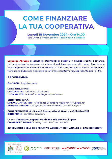 Verranno presentate soluzioni concrete per sostenere lo sviluppo e la modernizzazione delle cooperative, con un focus particolare sulla transizione ESG e sulla crescita patrimoniale, sempre più essenziali nel contesto attuale e leva competitiva per lo sviluppo delle piccole e medie imprese per le PMI".